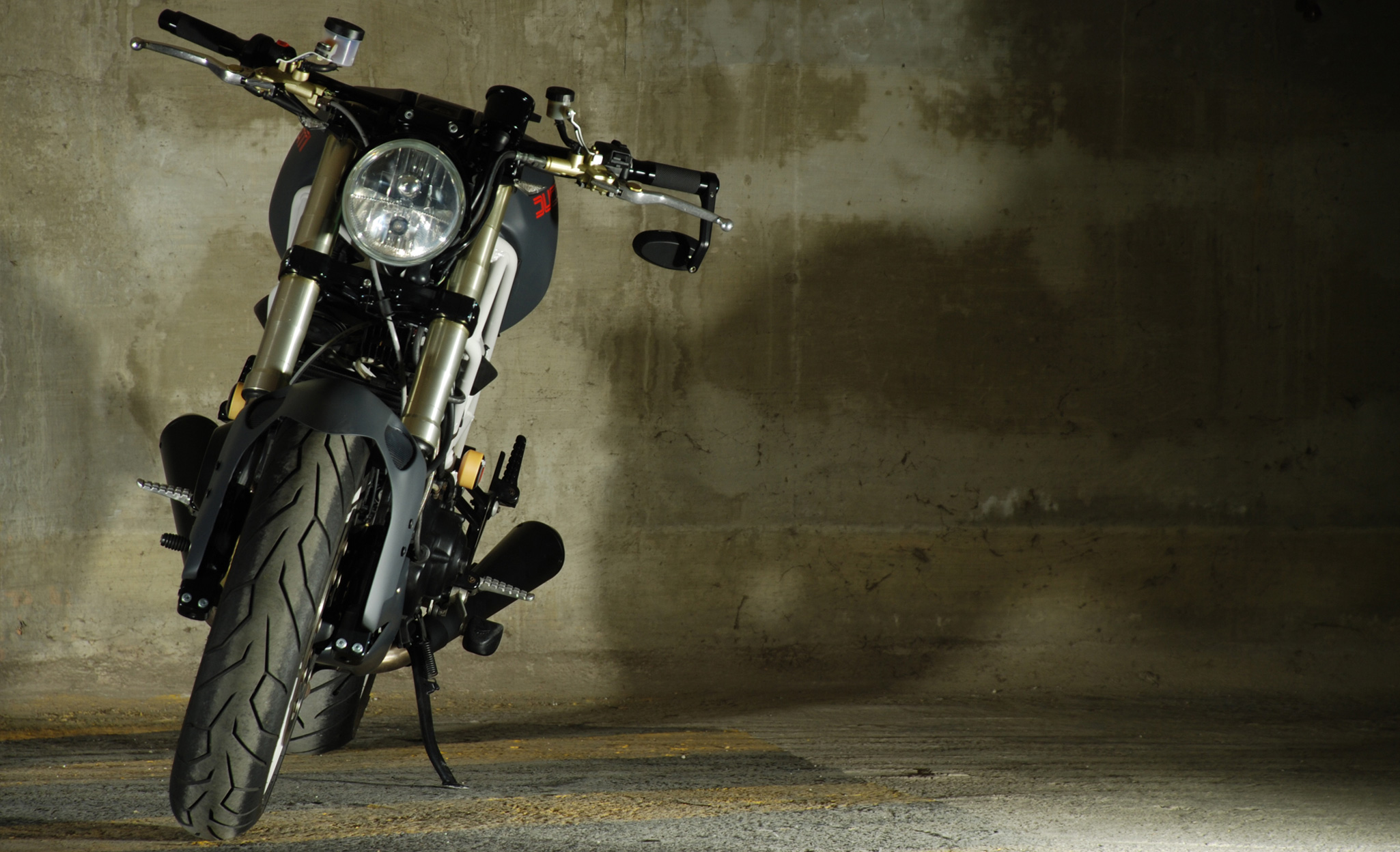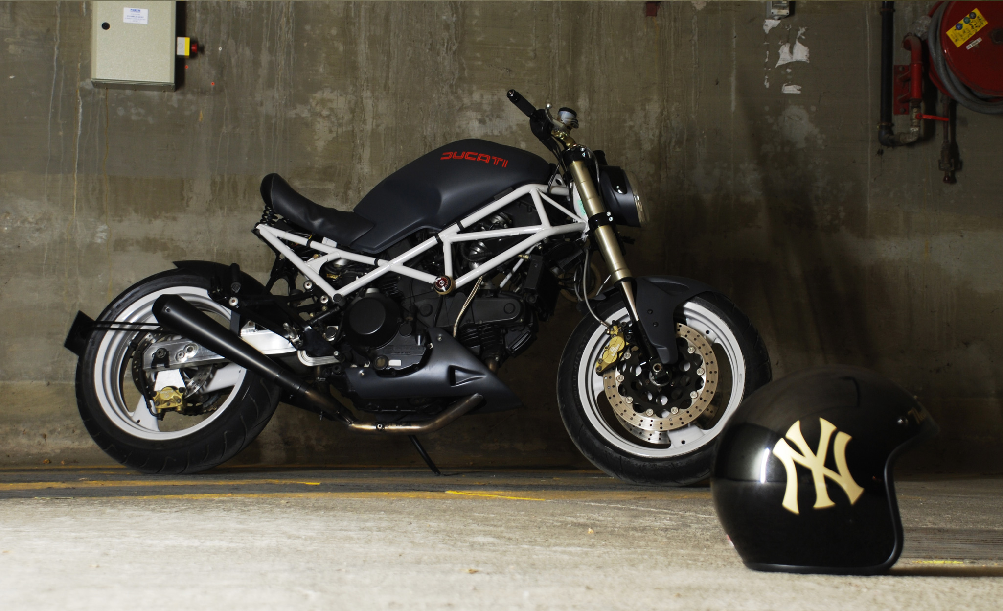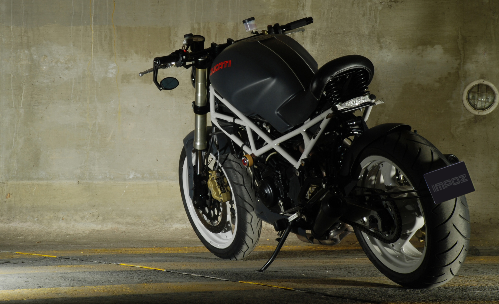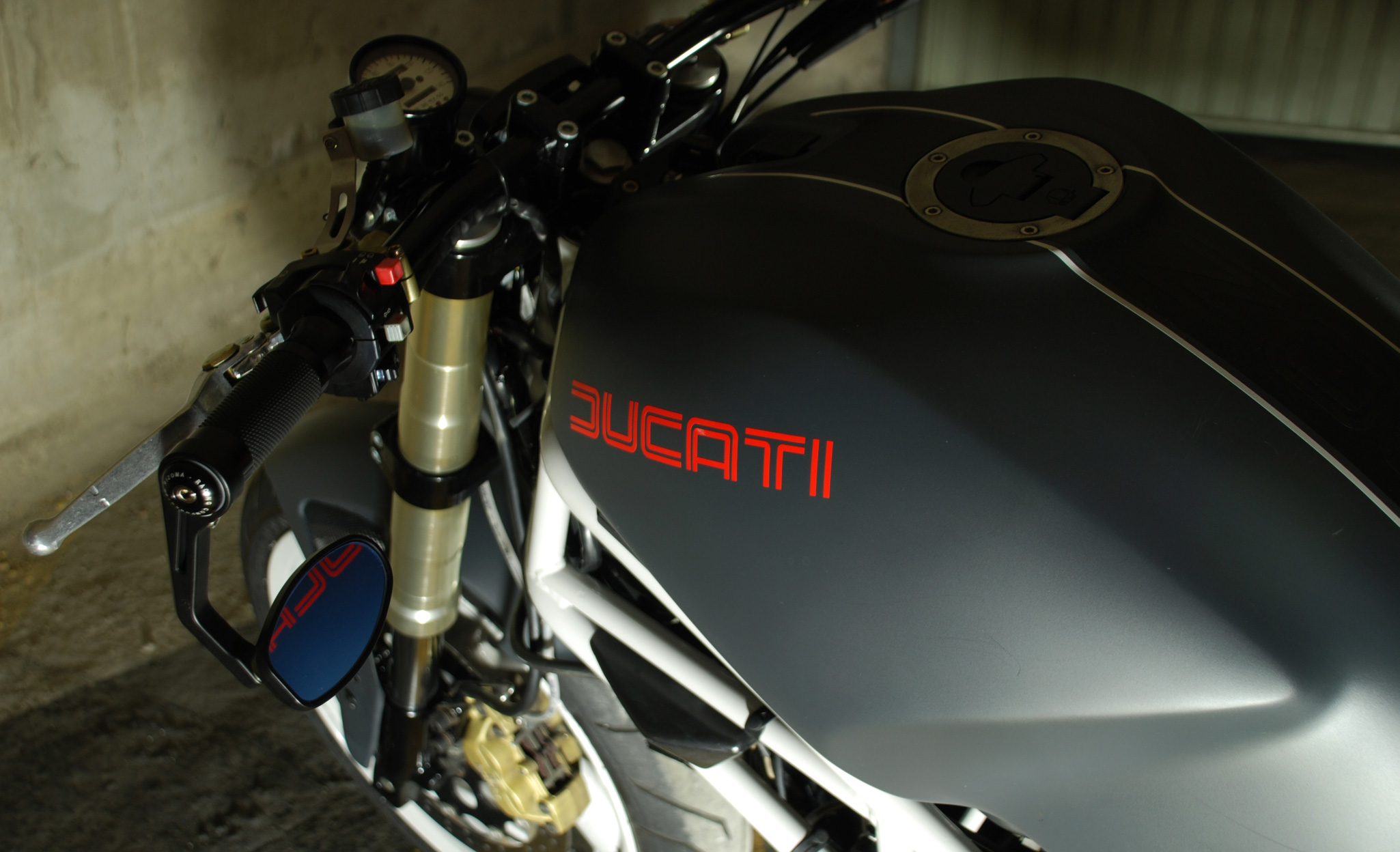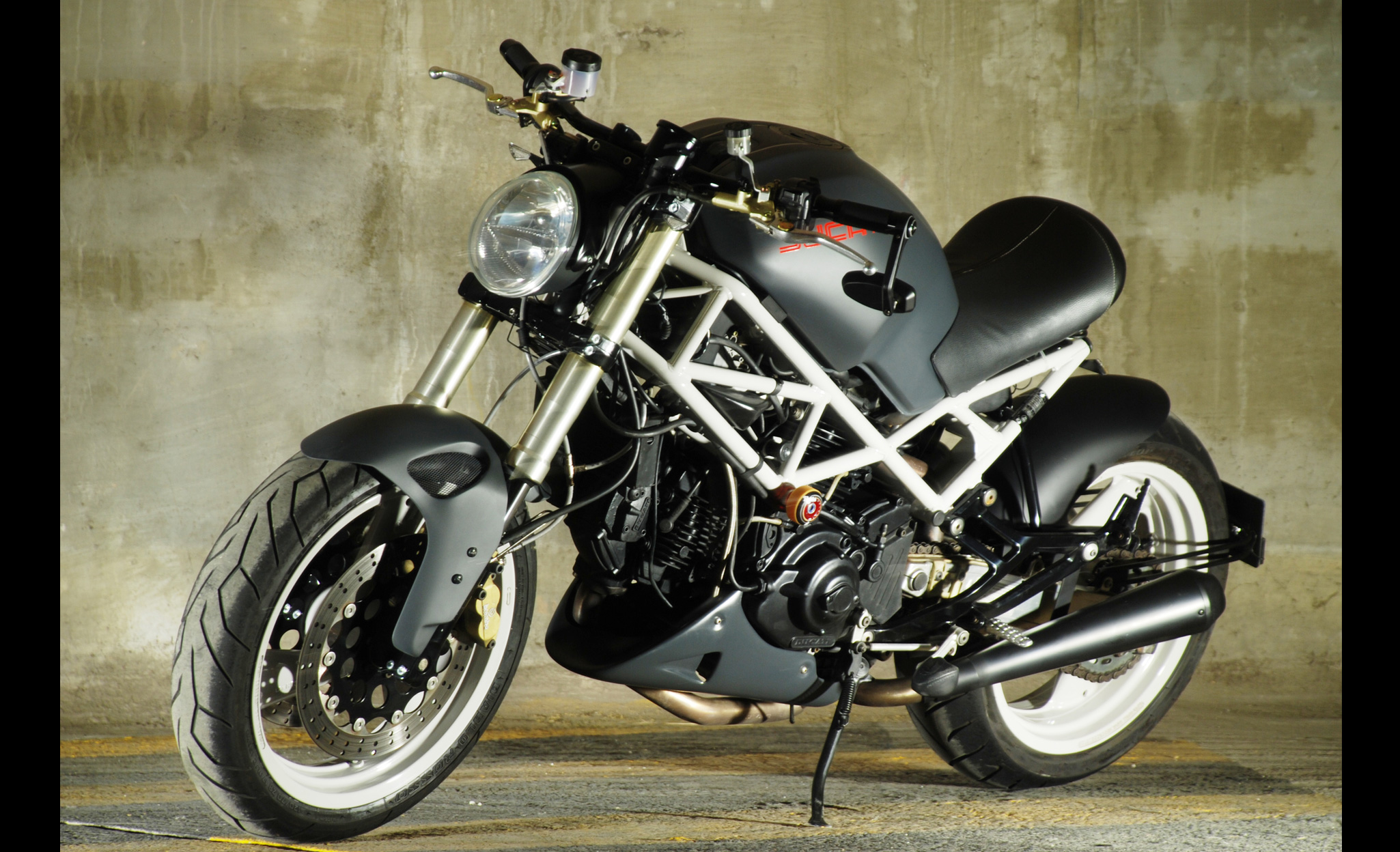 Issu de la culture twin, Benjamin a toujours plus ou moins personnalisé ses motos. Plutôt plus que moins sur sa dernière réalisation, sur une base de Monster 900 déniché dans le jardin d'un ami. Reconditionné et raccourci, le roadster italien peut chanter à nouveau !